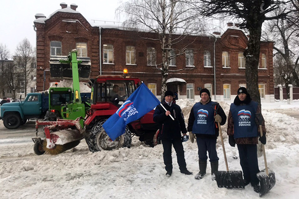 В январе выпало большое количество снега, и несмотря на то, что коммунальные и дорожные службы Судогды работали в усиленном режиме, на отдельных участках их усилий всё же было недостаточно. Чтобы помочь решить проблемы снежных завалов, на уборку снега вышли судогодские партийцы.